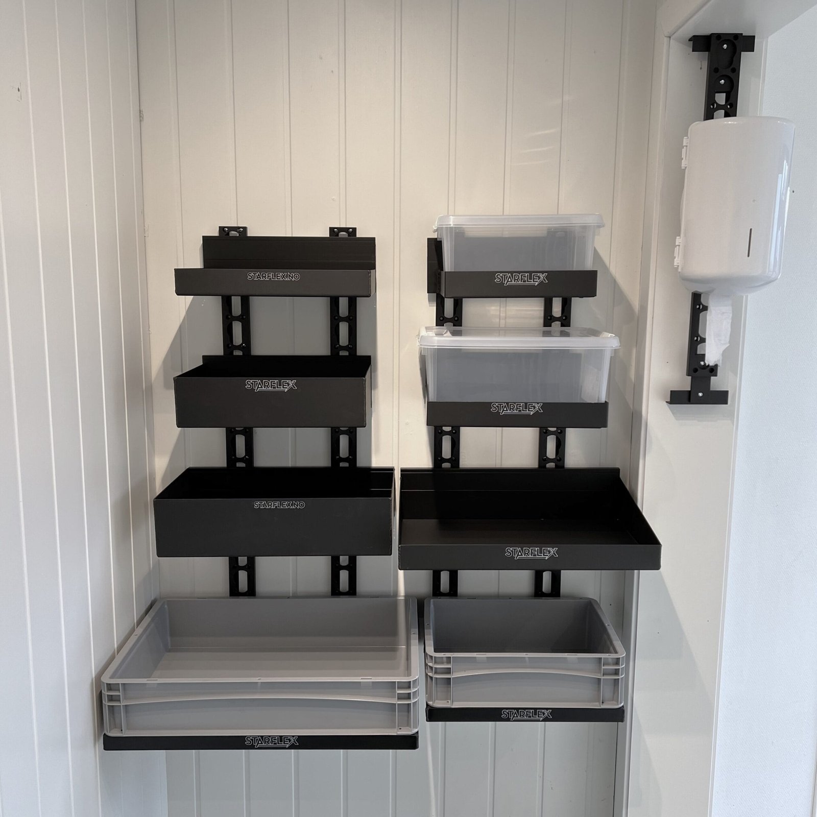 Shelf system. modulsystem for oppbevarings bokser og kroker
