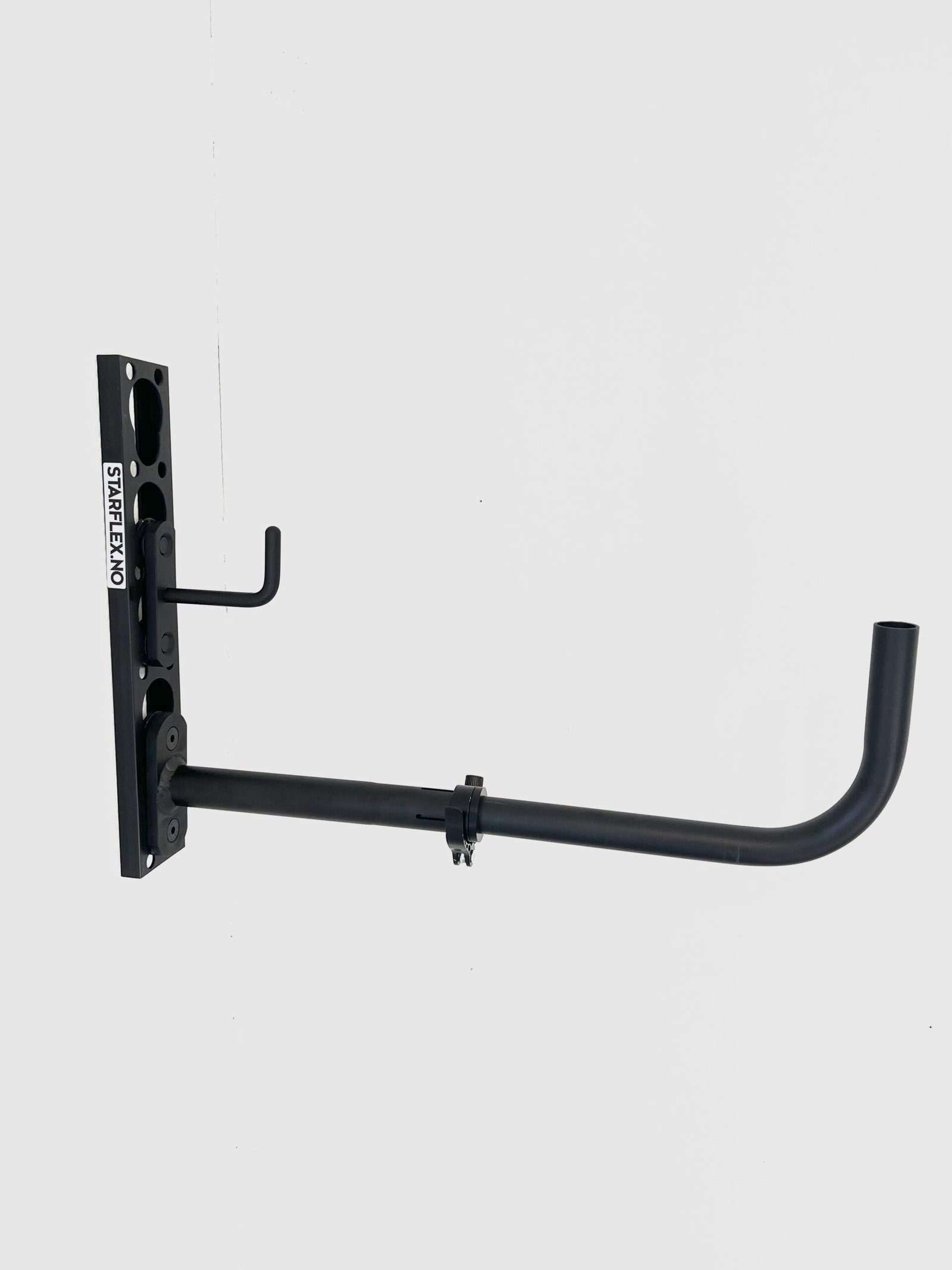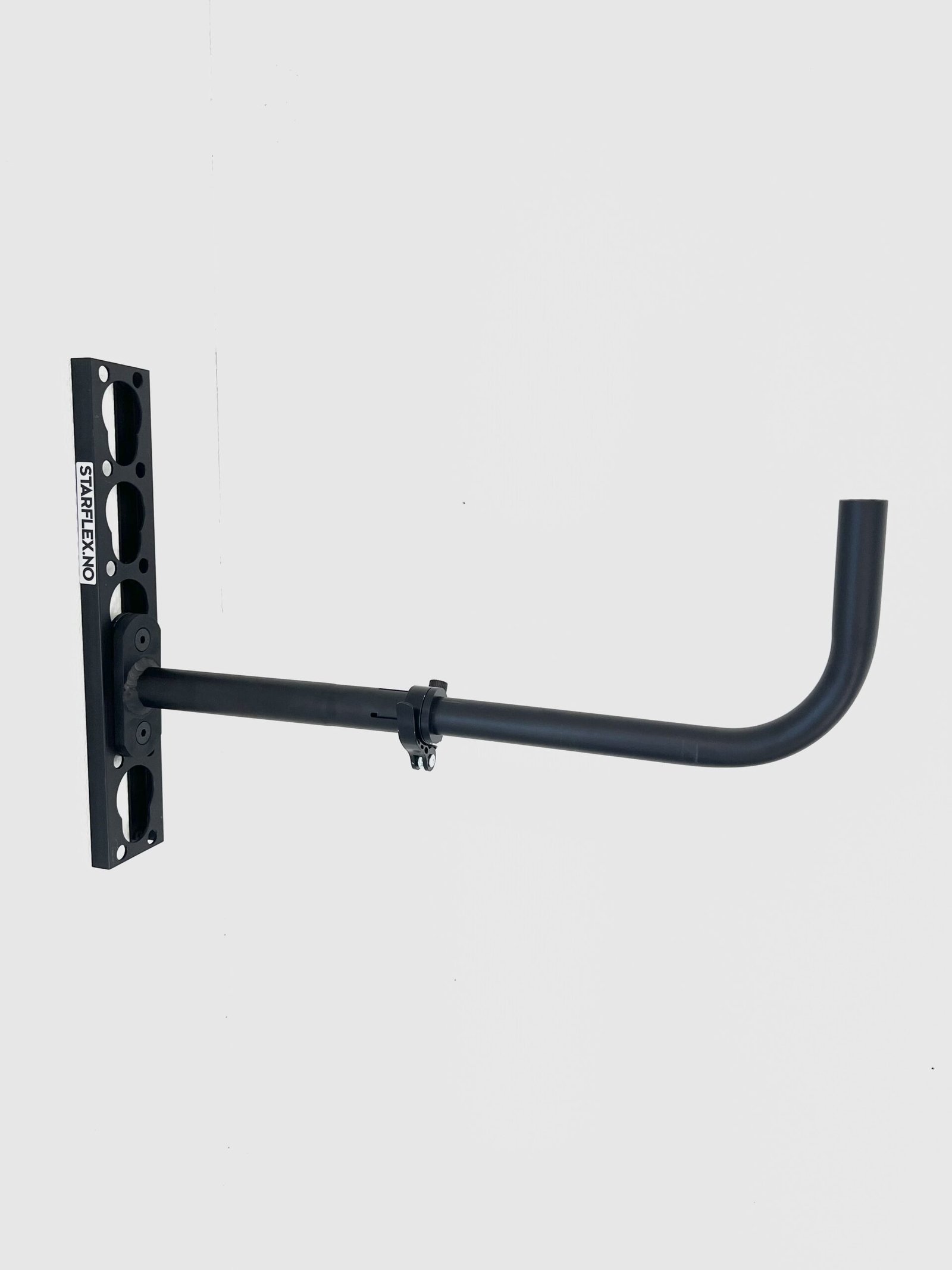 Starflex extra großer Aufhängehaken ist entwickelt für alle, die eine gute Reichweite und Stabilität für schwereres Gerät und größere Gegenstände benötigen. Beide Varianten bestehen aus leichtem, aber robustem eloxiertem Aluminium und lassen sich nahtlos in das Starflex-System integrieren.