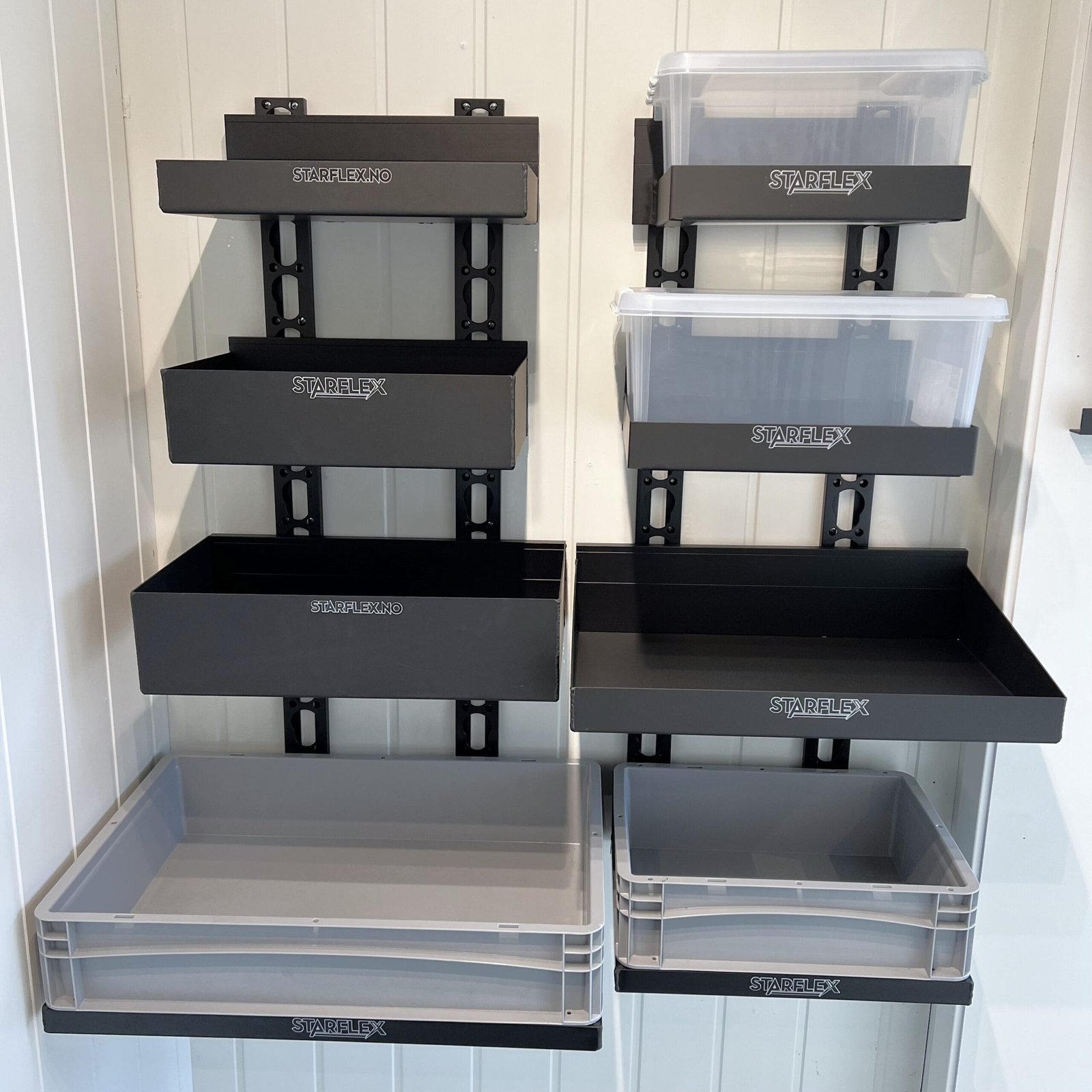 Div boks varianter fra starflex sitt modulsystem. lett å endre på samt stabilt og robust. sikker og rask oppbevaring. enkel montering,